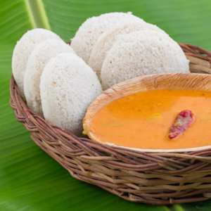Steamed, fluffy rice cakes served with coconut chutney and sambar a classic South Indian favorite.