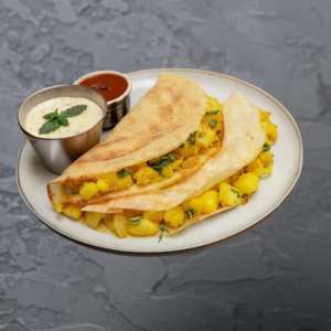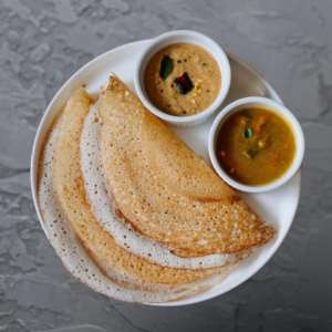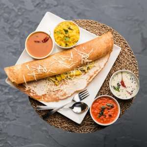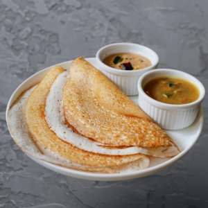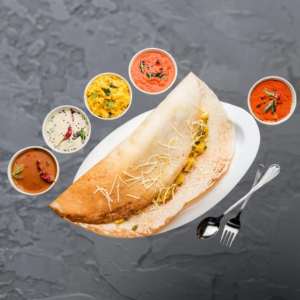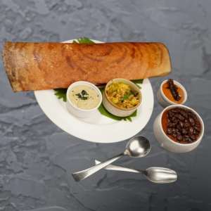 Crispy, golden kal dosa served with a crunchy vada and a side of hot sambhar simple, classic, and satisfying.