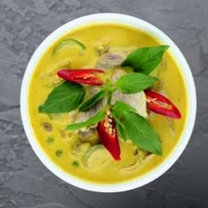 A mild, aromatic yellow curry with vegetables in coconut milk.