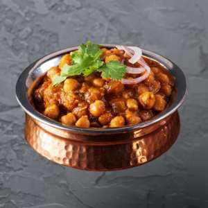 Tender chickpeas simmered in a tangy tomato-onion gravy infused with bold North Indian spices.