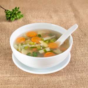 A hearty and flavorful soup loaded with noodles and fresh vegetables, simmered in a light, aromatic broth for perfect comfort in every sip.
