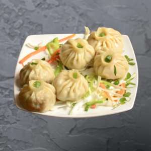 Steamed dumplings stuffed with seasoned vegetables, served with a tangy dipping sauce.