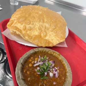A hearty North Indian combo of fluffy fried bread served with rich, spicy chickpea curry.